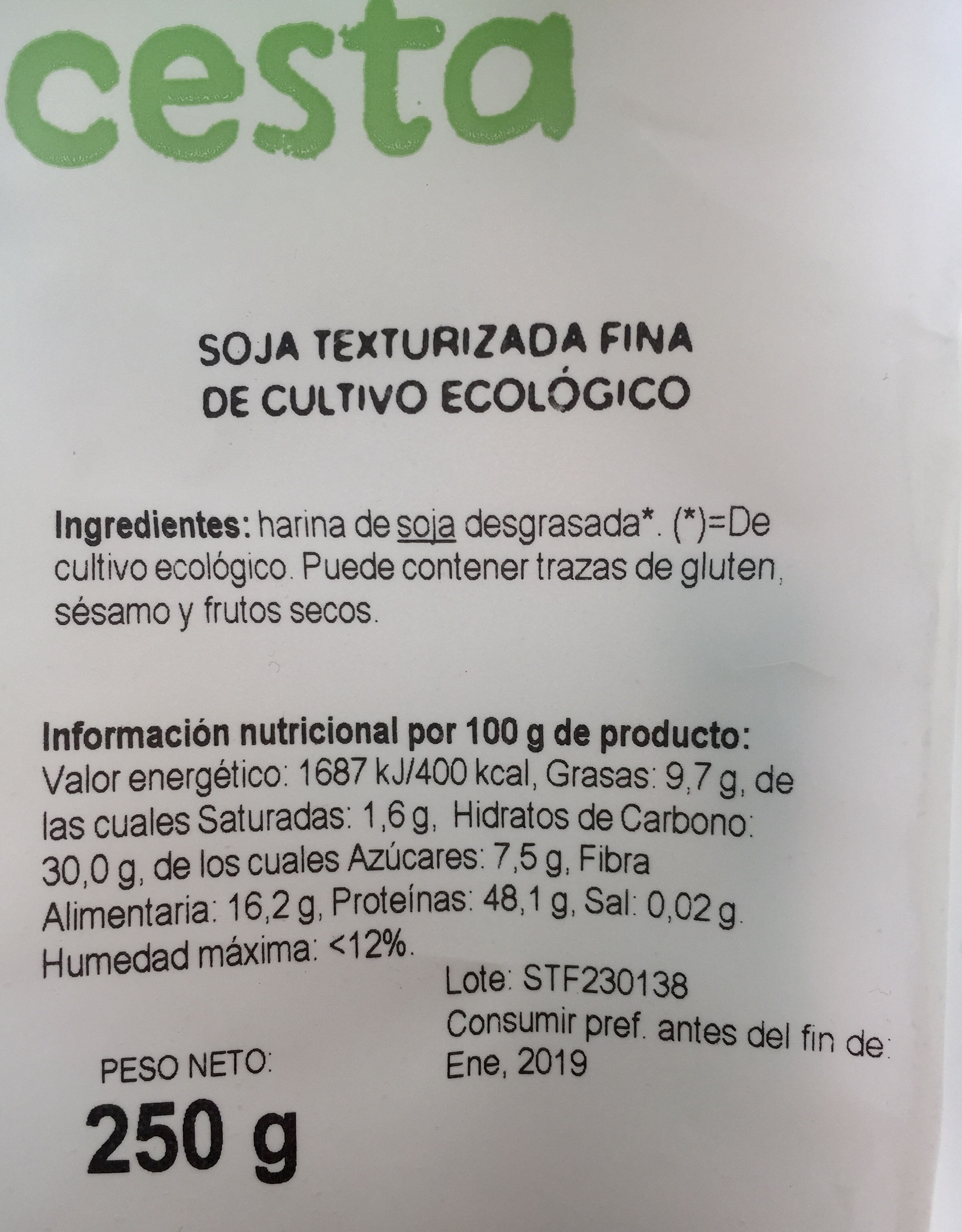 Ingredientes soja texturizada