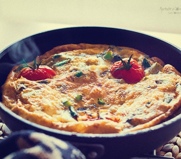 Tortilla de espárragos y tomates cherry, una completa, sabrosa y sencilla receta, para toda la familia.